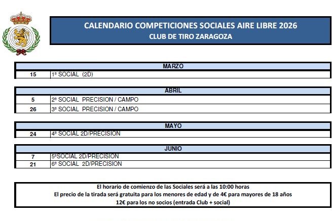 El CTZ se reserva la posibilidad de incorporar al calendario otras tiradas que no computarán en la clasificación final de la Liga Social.