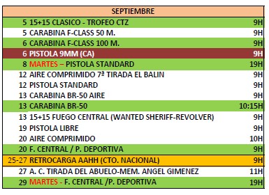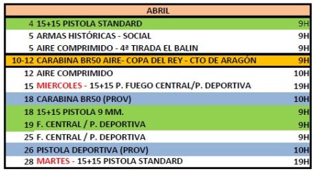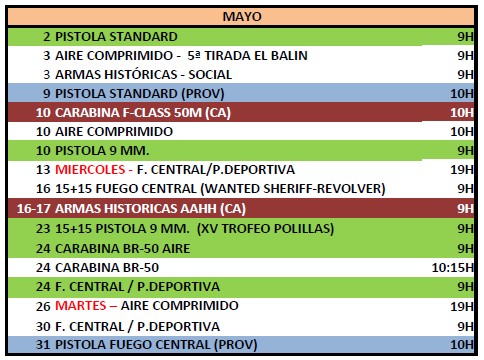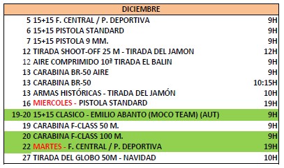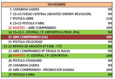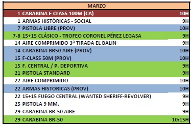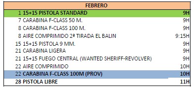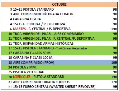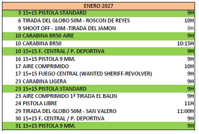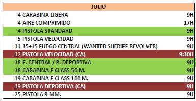 CALENDARIO SECCIÓN TIRO OLÍMPICO